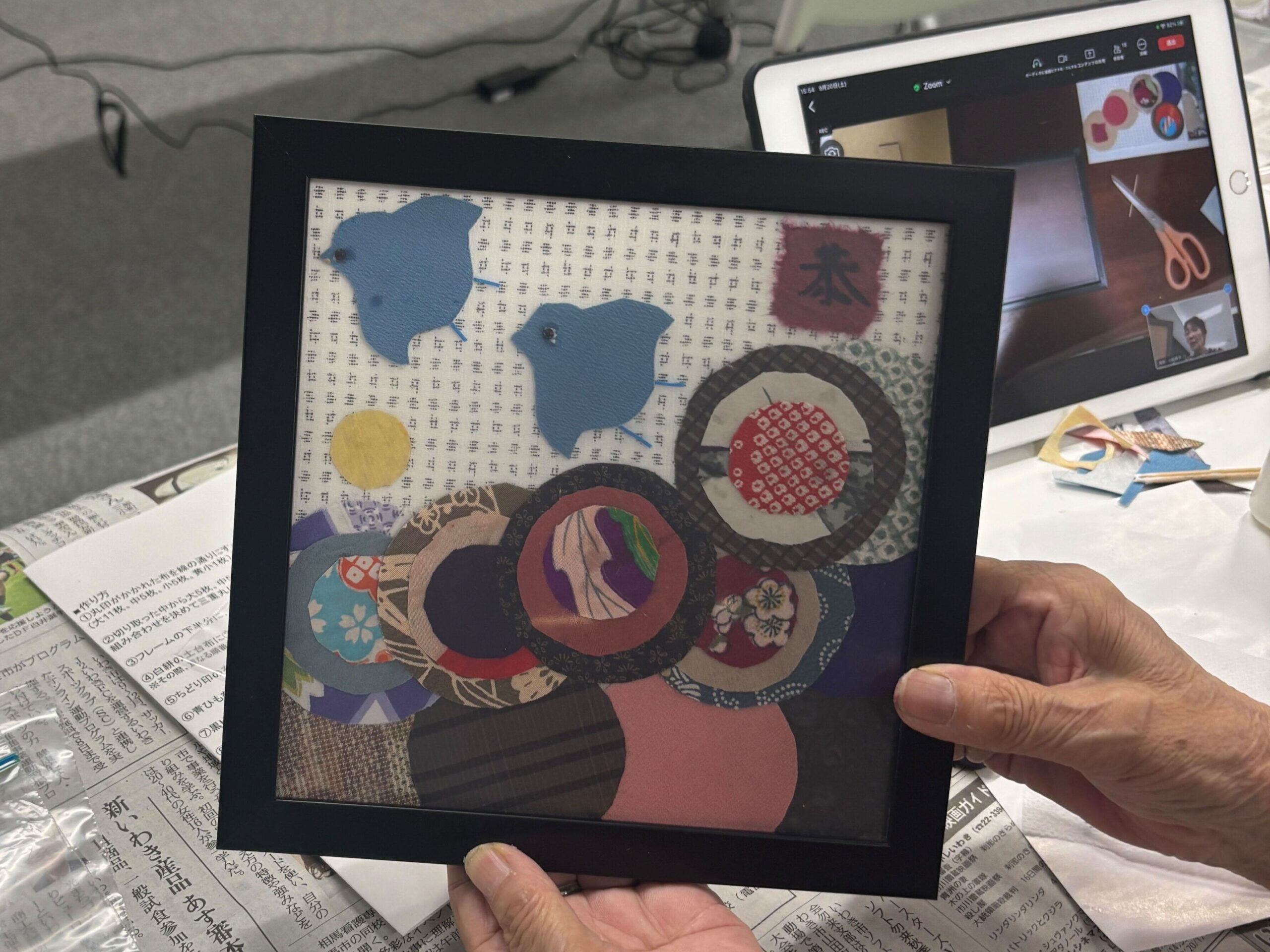 首都圏・福岡県・山形県の避難者さんがオンラインで繋がり、福岡からレクチャーしてくださる講師の手ほどきの元、素敵な作品の作り方を教わりました。