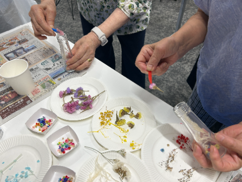 ドライフラワーを瓶に詰める工程では、配置や色合いに工夫を凝らしながら、皆さん素敵な作品を完成させていました。