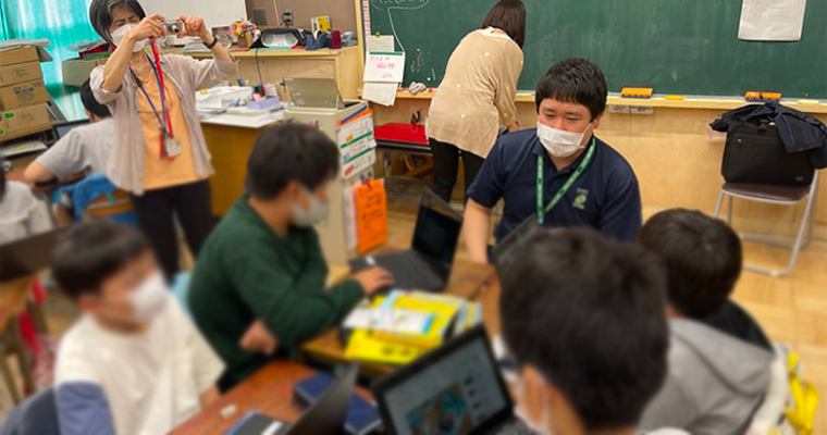小中学校での生きる力を育むため、震災を体験した避難者による生の声を活かした語り部授業、ICTを活用したカリキュラム例の紹介および授業へのT2※1としてのオンライン指導サポートを実施しています。